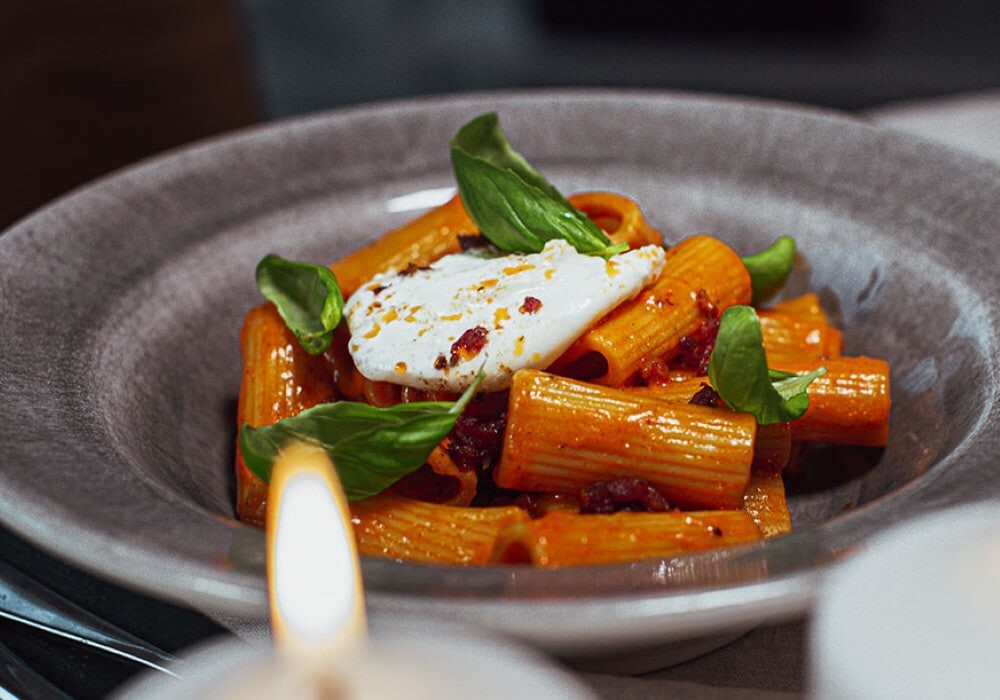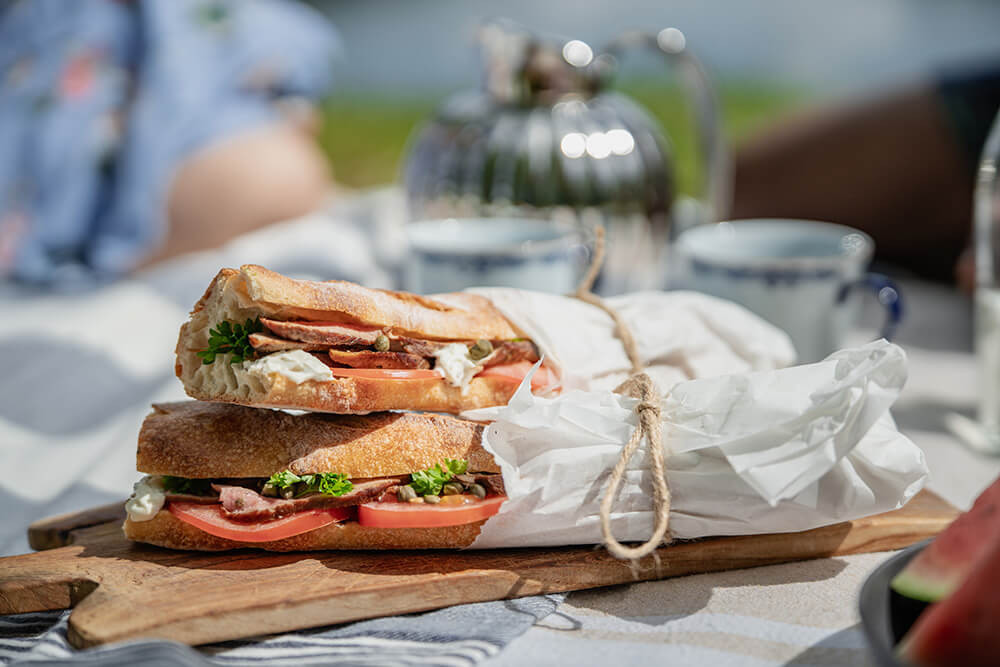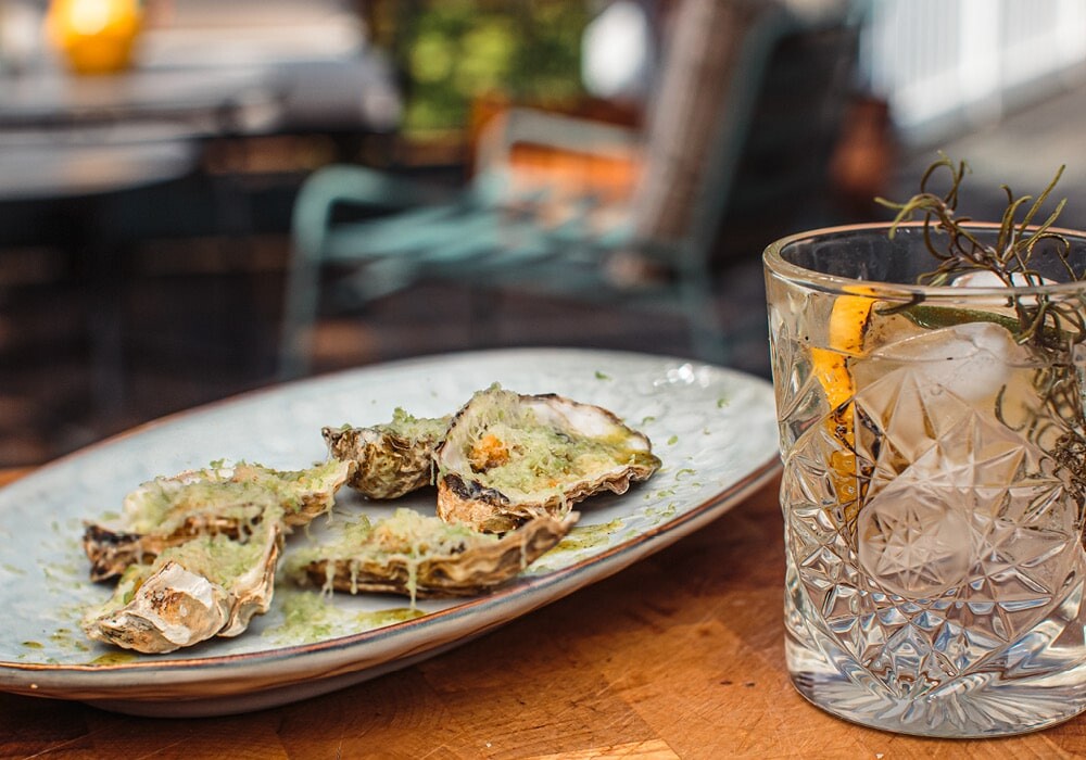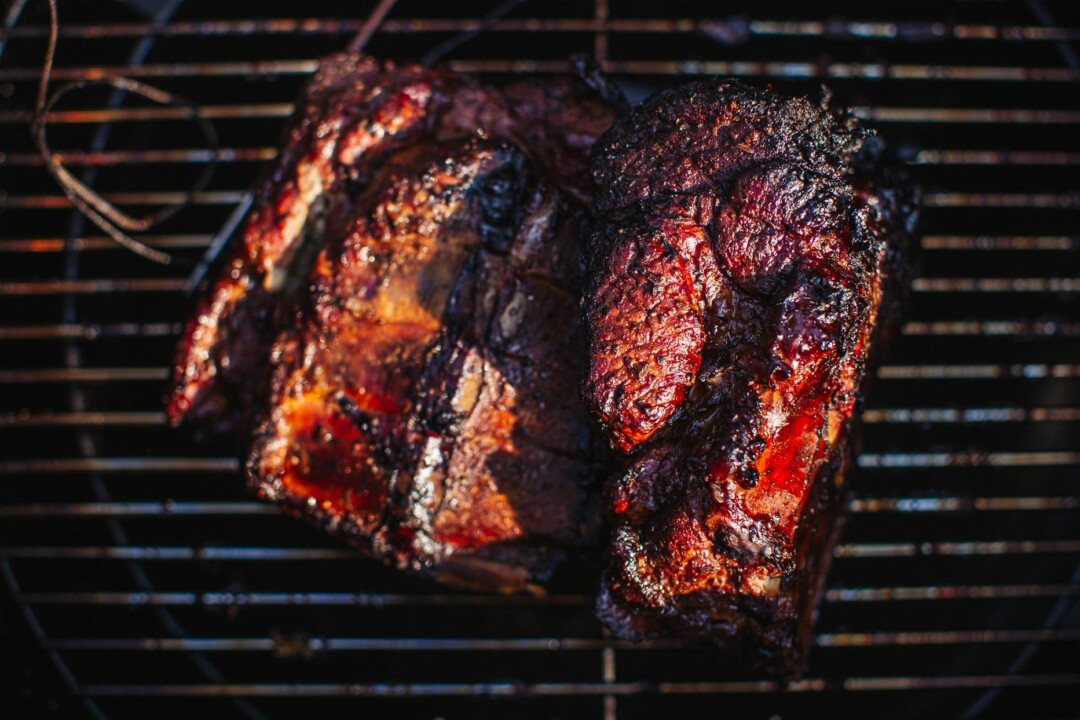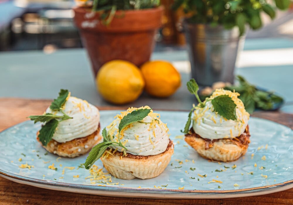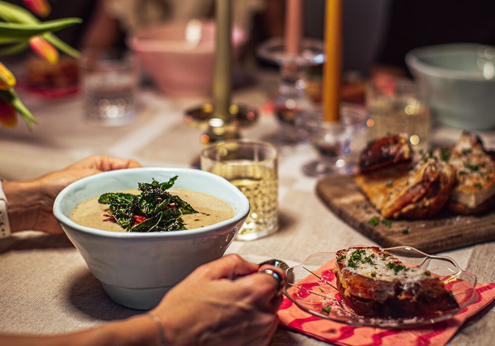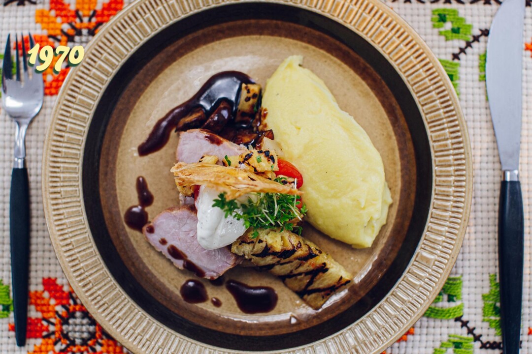 med varmrökt sidfläsk, lingongrädde, brynt smör och krispigt persiljebröd