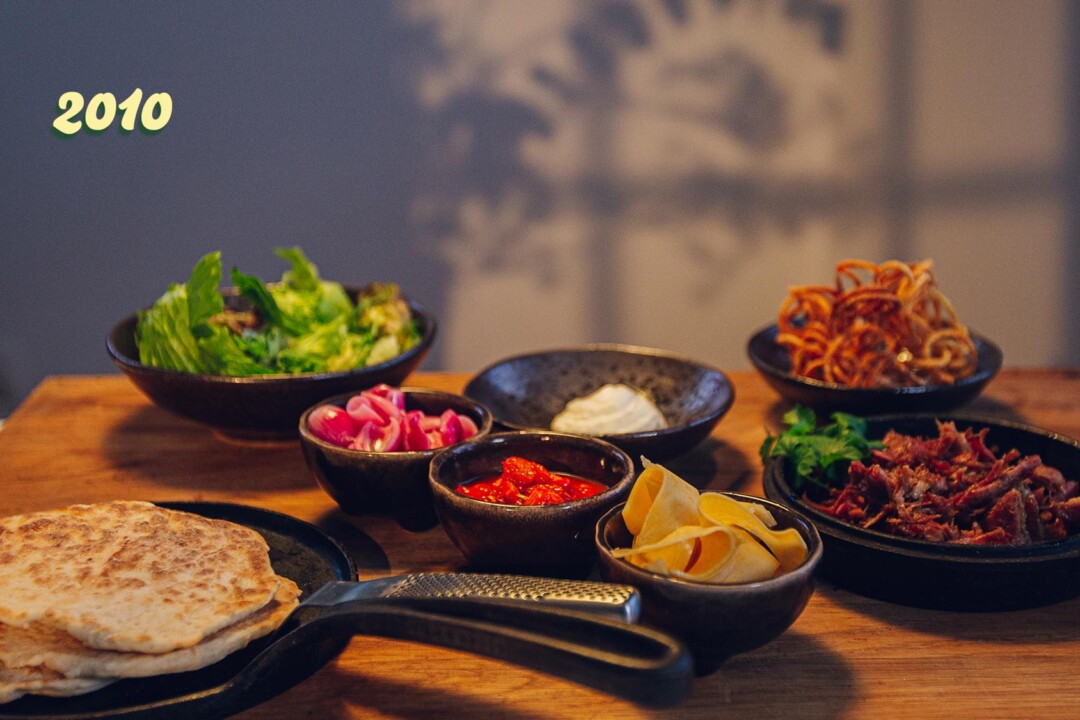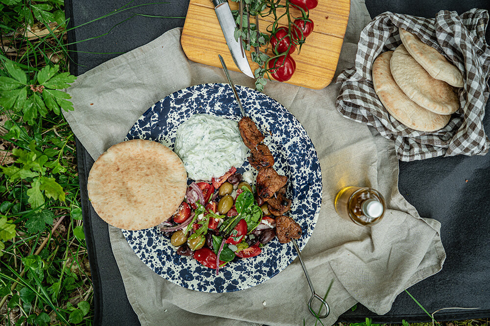 med tzatziki, syrlig tomatsallad och enkla pitabröd