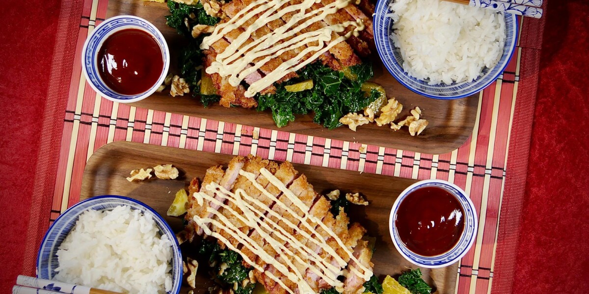Tonkatsu på julskinka med dijonsenapscreme, tonkatsusås och grönkålssallad